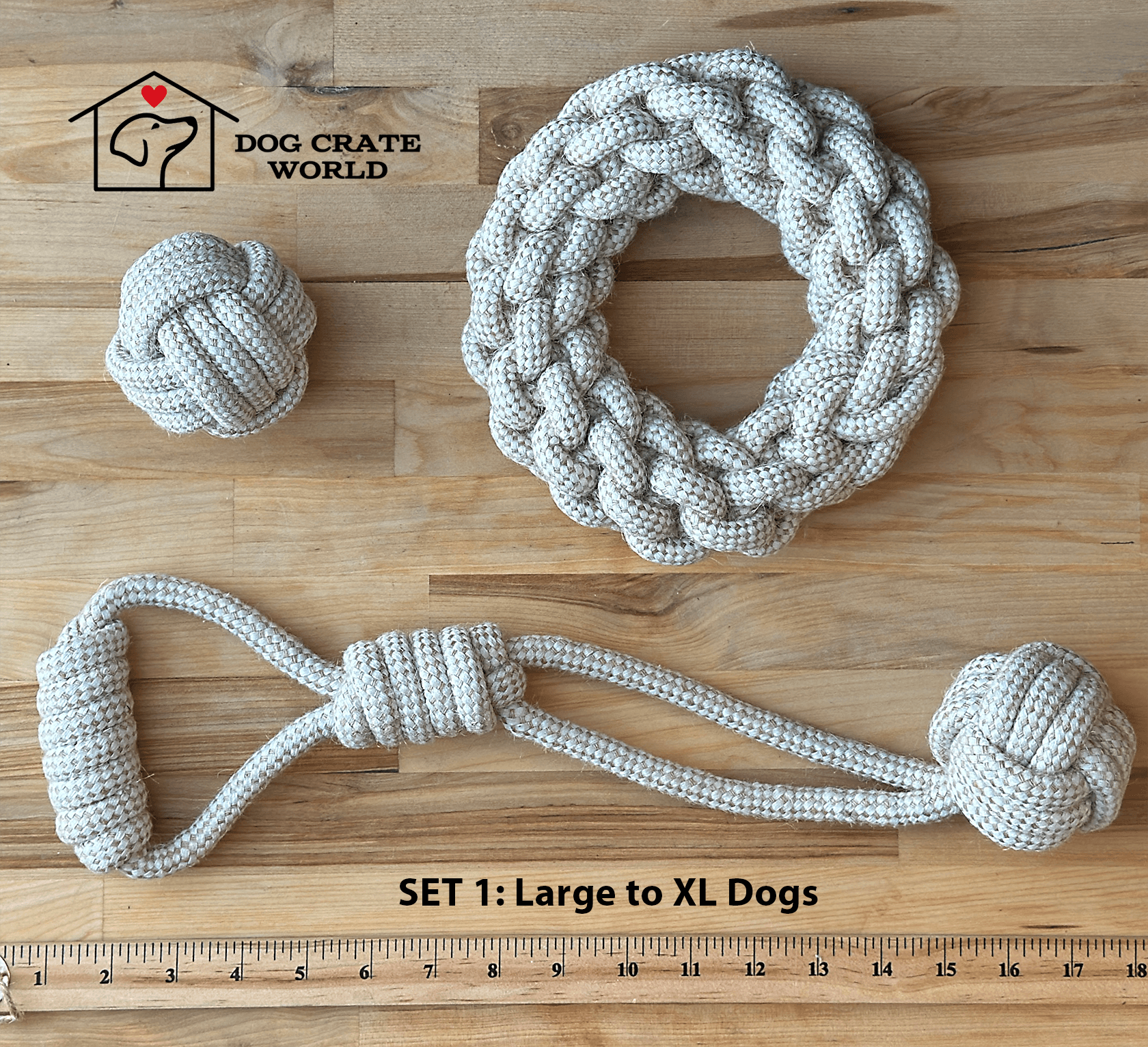 ✅ TWO SIZES: The toy sets are thoughtfully designed in two sizes. Choosing the best size toy for individual breeds is made easy with EcoHemp Dog Toys™.